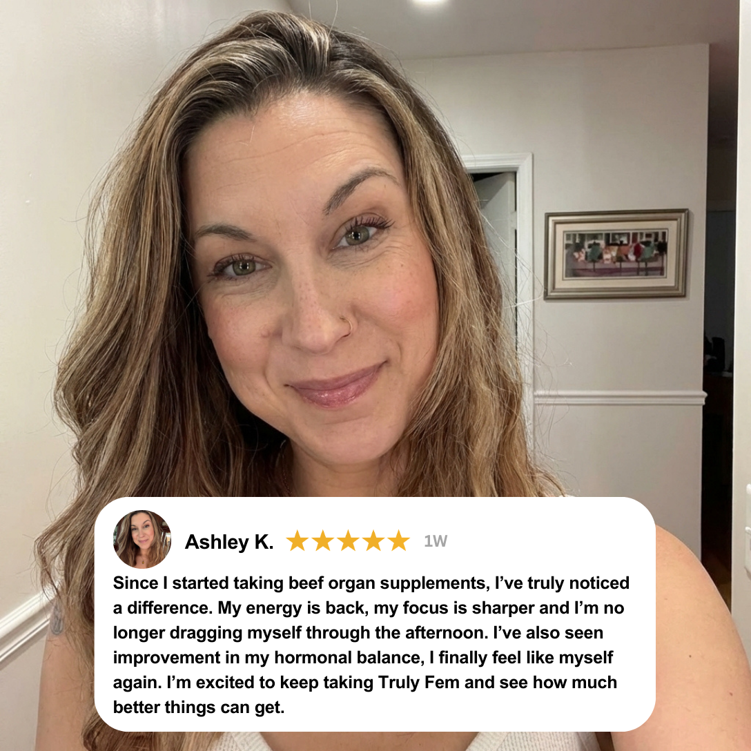 That's why we created Truly Fem — 6 nutrient-dense organs in one capsule, sourced from 100% grass-fed, pasture-raised cattle. No fillers. No synthetics. Just the nutrition women have relied on for generations.